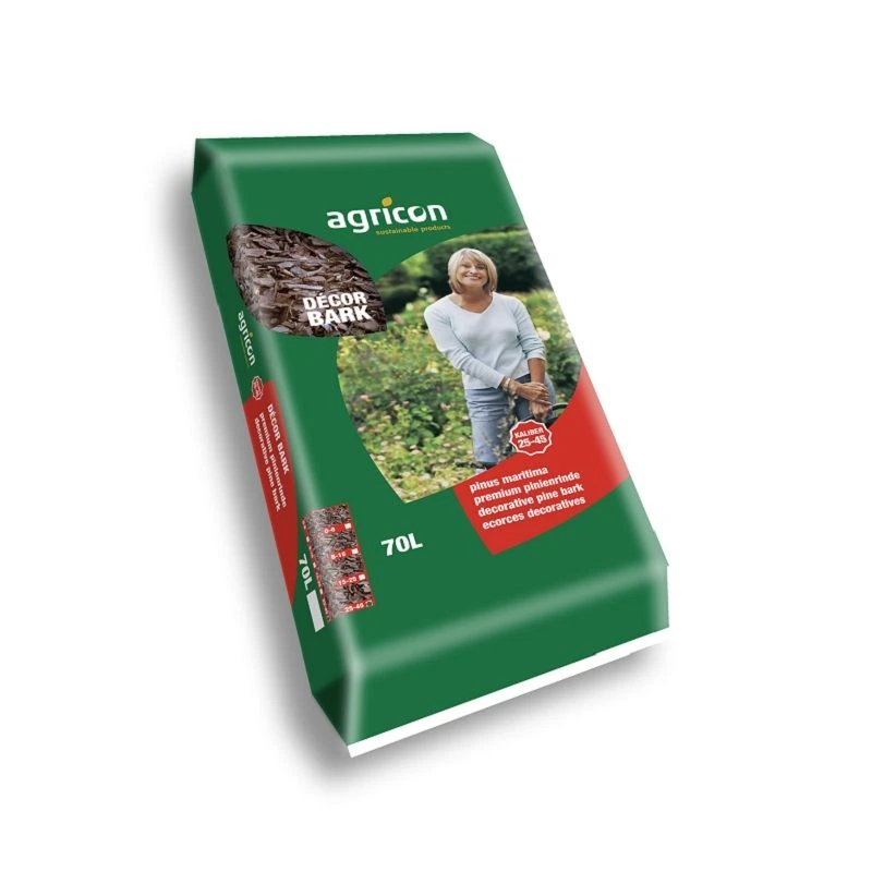 Franse zeeden boomschors 70L. Een natuurproduct uit Franse decoratieve pijnboomschors en is op basis van zijn roodachtige kleur bijzonder goed geschikt voor de decoratieve vormgeving van tuinen. De boomschors laat struiken en bloemperken werkelijk tot hun recht komen. Het beschermt de grond tegen uitdroging en hoge temperatuurschommelingen. Daardoor wordt de lucht- en waterhuishouding geoptimaliseerd en het bodemleven bevorderd. De boomschors is geschikt voor alle soorten grond en vermindert erosie. Het verhindert het ontkiemen van onkruidzaden. Franse boomschors kan het hele jaar gebruikt worden.