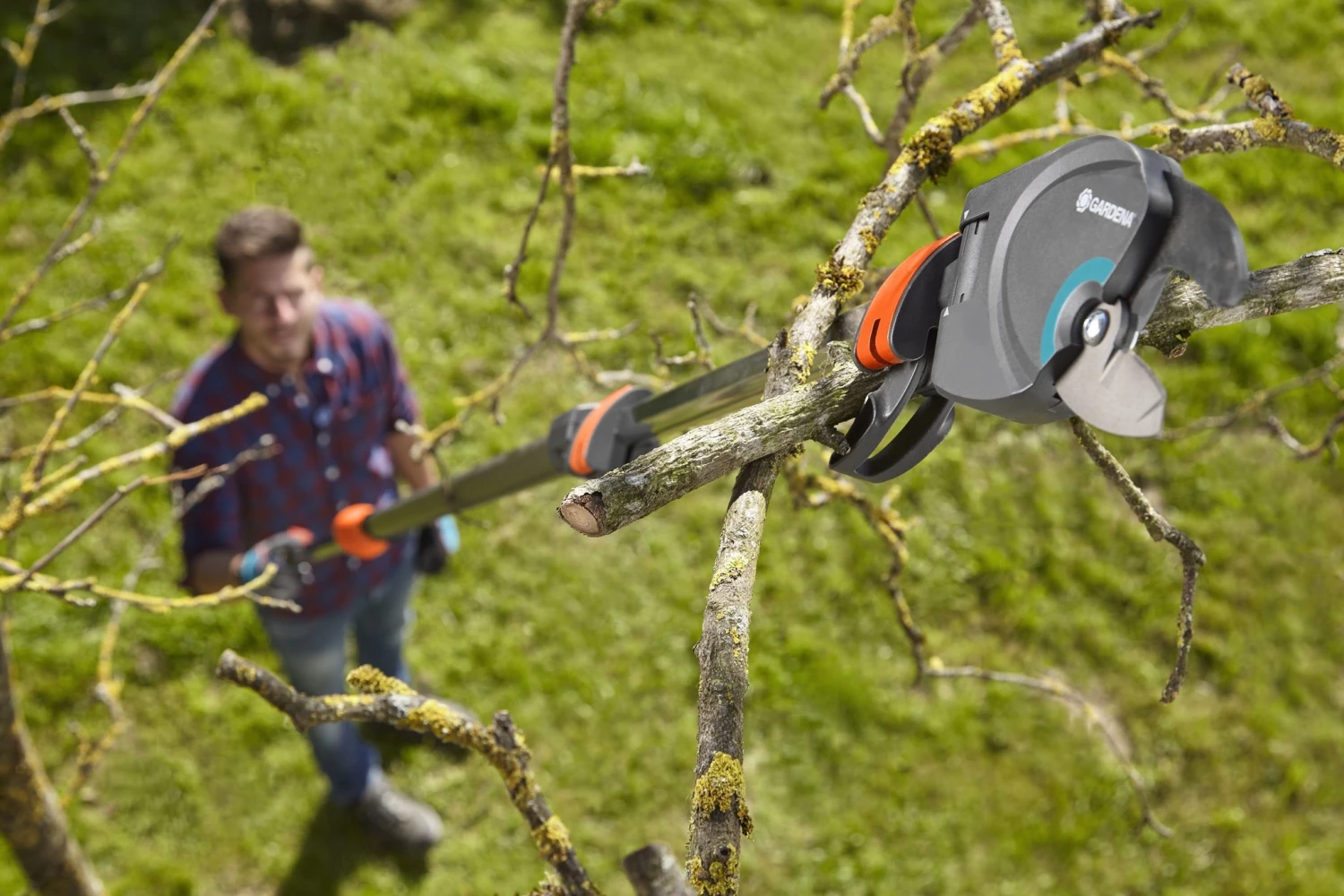 De Gardena boom- en takkenschaar StarCut 410 plus kan takken met een diameter tot wel 32 mm knippen. Ook heeft het een intern mechanisme dat voorkomt dat de steel tijdens het snoeien vast komt te zitten tussen de takken. Met de ultralichte en smalle steel is het makkelijk manoeuvreren naar de tak die gesnoeid moet worden. De messen zijn speciaal gecoat, zodat ze niet plakken en dus makkelijk door de takken heengaan. De Gardena Takkenschaar StarCut 160+ is gemaakt in Duitsland en heeft een garantie van 25 jaar.