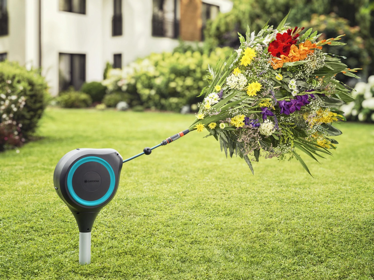 De slangenhouder en de bodempen worden eenvoudig met elkaar verbonden, waardoor de box een draaicirkel van 360 graden heeft. Zo heb je alle bewegingsvrijheid tijdens het sproeien. Dankzij deze flexibiliteit is iedere hoek van de tuin makkelijk bereikbaar zonder dat de slang in de knoop raakt. Als je na het sproeien zachtjes aan de slang trekt, rolt hij automatisch weer op. De geïntegreerde slanggeleider en de RollControl-technologie zorgen ervoor dat de slang veilig en geleidelijk wordt opgerold, zonder dat de slang knikt of in de knoop komt. De box is gemaakt van hoogwaardige materialen en is daardoor bestand tegen strenge weersomstandigheden en UV straling. Zo kan de box het hele jaar door gebruikt worden.