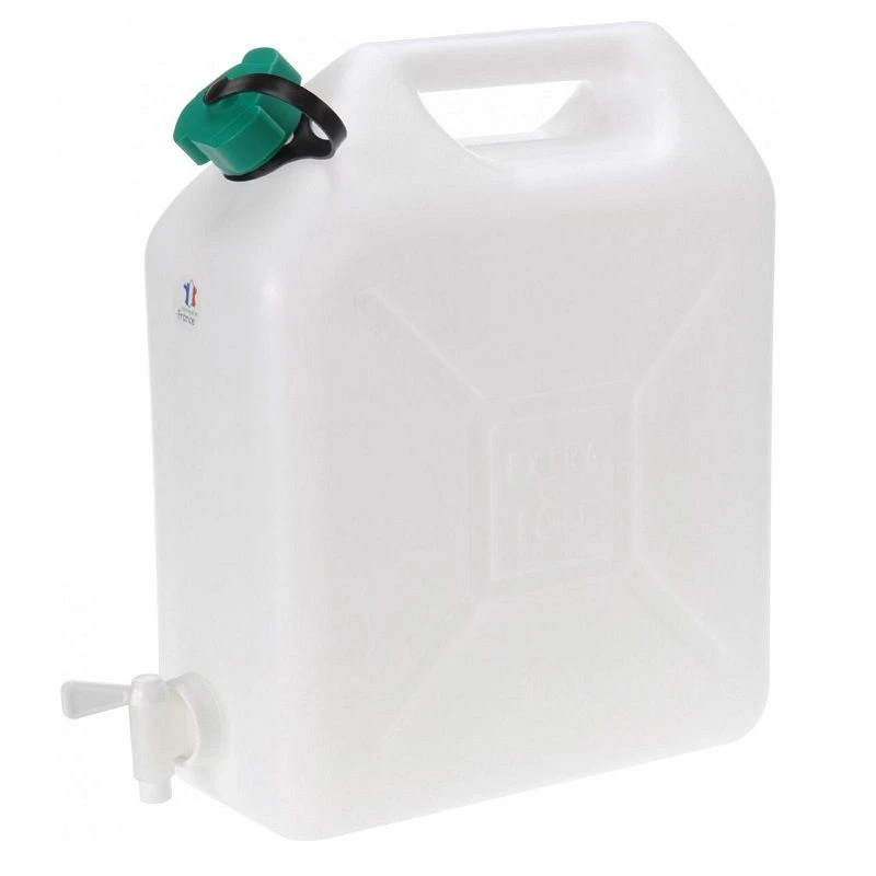 Water-jerrycan wit met kraan. Een jerrycan voor levensmiddelen, zoals water, olie, limonade, dranken etc. Gemaakt van de beste kwaliteit kunststof (HDPE) en wordt ook wel food grade jerrycan genoemd.