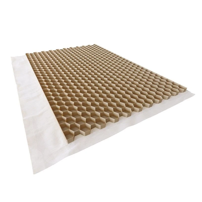 Nidagravel, grindstabilisatie. ontwikkeld voor de aanleg van stabiele, duurzame en waterdoorlatende wegverhardingen in grind. Nidagravel 129, polypropyleenplaten met honingraatstructuur, met een afmeting van 120x80x3cm. De grindstabilisatieplaten zijn licht en drukbestendig. Ze worden gebruikt om cohesie te geven aan korrelvormige ondergronden, zodat ze passend verkeer kunnen toelaten. Ze hebben tot doel om terreinen, bestaande uit grind of zand te versterken en te stabiliseren.
