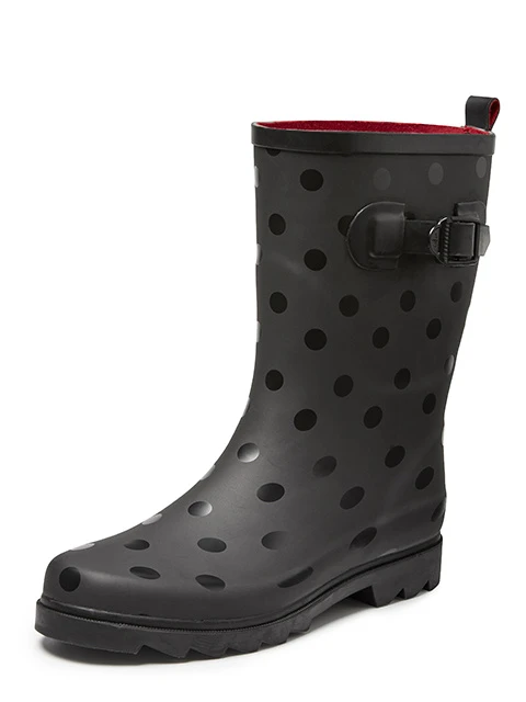 De dameslaars Anna van Gevavi Boots is volledig gemaakt van rubber. Deze regenlaars is daardoor ook 100% waterdicht. Deze laars heeft een kortere en bredere schacht dan andere regenlaarzen. HIerdoor is de dameslaars ook geschikt voor brede kuiten. Dameslaars Anna is matzwart met glimmende zwarte stippen. De binnenvoering van de laars is rood, wat de regenlaars een luxe en stijlvolle uitstraling geeft. Deze laars is uiterst geschikt voor werken in de tuin of andere buitenactiviteiten.