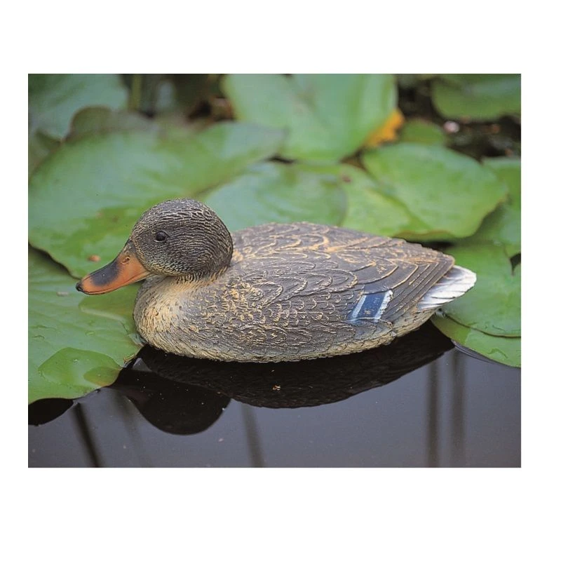 Een decoratieve wilde eend van kunststof om in en rond de vijver te plaatsen. Gezellig en sfeervol om te zien.